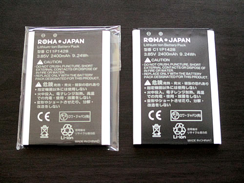左が新しいバッテリー、右が膨らんだバッテリーです。どちらも、ROWA JAPANの互換バッテリーです。