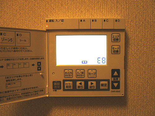 どんな状態かというと、全く動かず、エアコンと床暖リモコン、どちらにも、E8と表示されます。