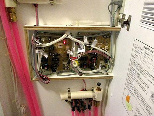 ここで、床暖のコントロールをしているようで、写真の右上にコンセントが二つあり、一つは1階、もう一つは2階の床暖です。