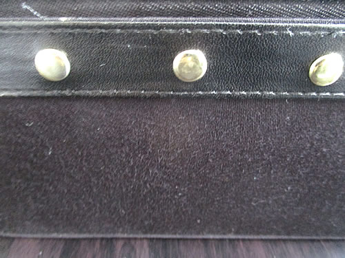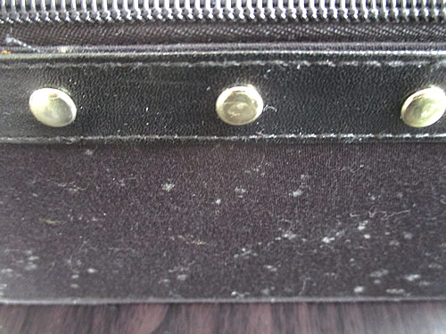 母が、クローゼットの奥で見つけたという化粧ポーチなのですが。表面に白い点々があり、どうもカビらしく、それを落とすことに。