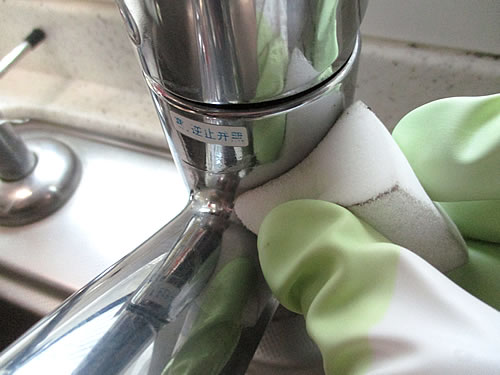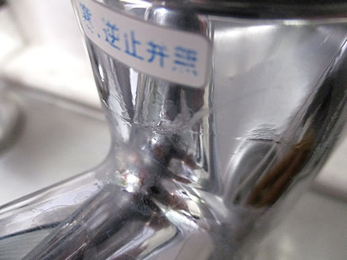 まず、蛇口の材質を調べました。蛇口は、銅と亜鉛の合金『真鍮(しんちゅう)』がほとんどとのこと。真鍮は、やや赤みがある黄色で光沢もあります。