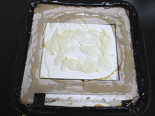 容器に接着剤を出し、それを塗って、貼り付けるのですが。この接着剤、塗った後、5~10分ほど放置してから貼ります。外れやすい部分は、テープなどで固定。数時間~1日で固まります。