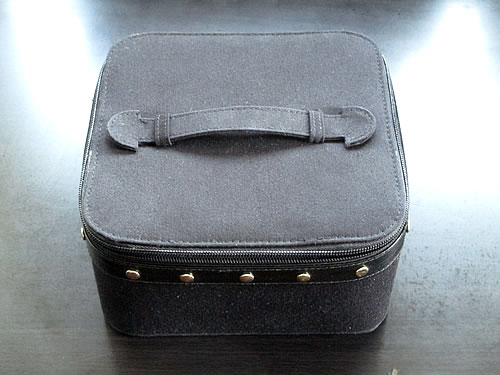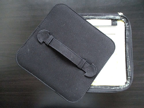これが、化粧ポーチと取れたフタです。作りをみると、ちょっと無茶なようにも見えます。持ち手の部分が、接着剤でくっ付けただけなため、接着剤の強さだけでポーチの重さを支えることになります。