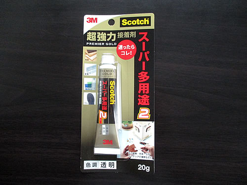すると、『スコッチ 超強力接着剤 プレミアゴールド スーパー多用途2』を見つけ、これを注文。透明、ホワイト、ブラックがあるのですが、他にも使えそうだと透明にしました。