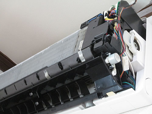トレイを外すには、風向きを調節するルーバーも外すことになり、結構、大変そうです。最悪、ルーバーが動かなくなっても、エアコンが使えればいいかとなり、自分で分解してみました。