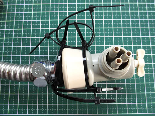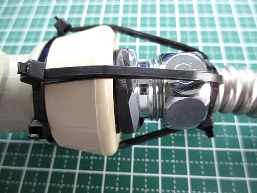 接続する部分の両サイドに結束バンドを取り付け、その間を締め上げるように、結束バンドを取り付けるというものです。この結束バンド、PC内部のケーブルなどに使うものです。