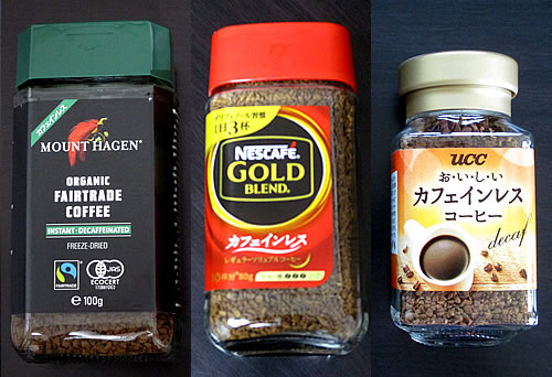 今回は、『マウントハーゲン オーガニック フェアトレード コーヒー』、『ネスカフェ ゴールドブレンド カフェインレス』、『UCC お・い・し・い カフェインレス コーヒー』を飲んだ感想です。