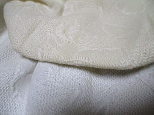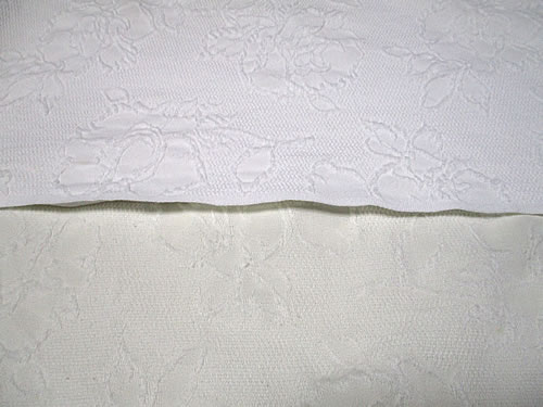 これが、黄ばんでいた部分と最初から白い部分を折って、比べたものです。こうしてみると、確かに、黄ばんでいた下のシーツは、白っぽくなりました。