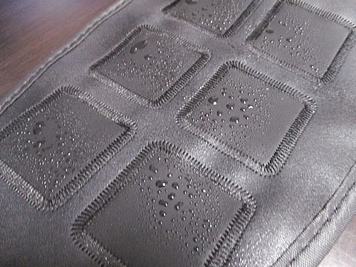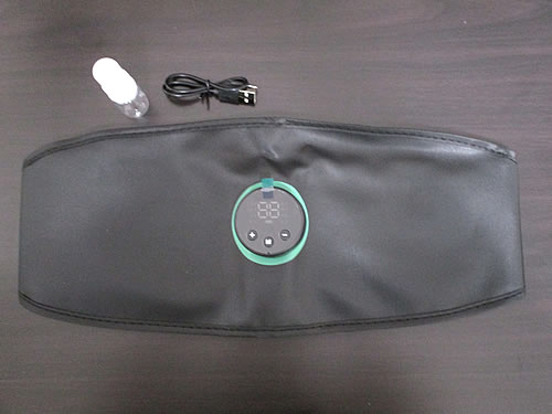 このEMS腹筋ベルトは、粘りがあるジェルパッドではなく、付属の霧吹きで水分を含ませ、お腹に巻くというものです。巻き付けるマジックテープがしっかりしていて、強くお腹に押し当てられるため、結構、効きます。