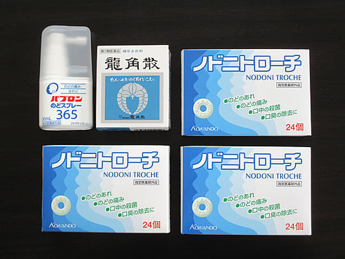 この3つ、薬として、他と比べたら、これよりも強いものはあるのですが。ちょっと喉がおかしい程度で使うには、ちょうど良く、使い続けています。