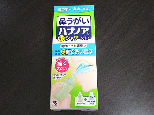 鼻うがいで使っているのは、お笑い芸人 今田耕司さんがCMに出ていた『鼻うがい ハナノア シャワータイプ』です。初めての方でも使いやすそうなもので、現在も、これを使い続けています。