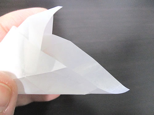 包みを開いたものの、これ、どうやって飲むのかなと、しばらく、悩みました。ふと両端を押したところ、フタ部分の紙が細くとがり、これで、口に入れればいいのかと驚いたのですが。説明書を見たところ、紙は全部開いて、二つ折りにして飲むようにとあり、正しい飲み方ではないようです。
