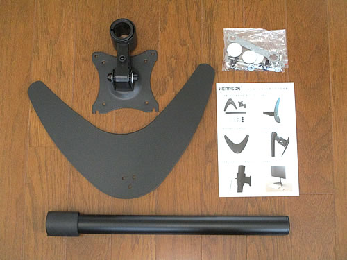 組み立ては、説明書の画像を見ながら、簡単でした。PCモニターを傾ける部分などの工具は付いているのですが、PCモニターを固定するねじ止め部分は、プラスのドライバーが必要です。