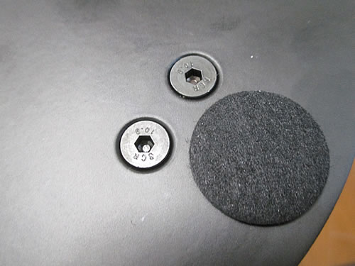 置いたところに傷が付かないよう、スタンドの下に貼り付けるクッション材(円形)があります。