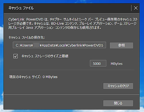 キャッシュの保存先は、上にある歯車のボタンから、【全般】を選び、各項目の一番下にスライドすると、【キャッシュ】があります。