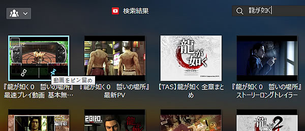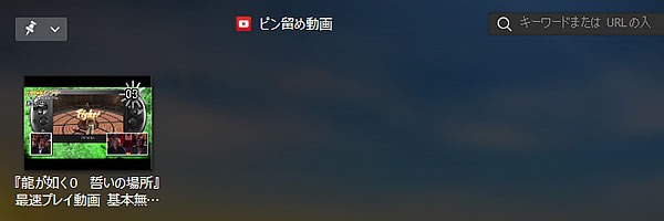 使い方は、見たい動画のキーワードを検索。表示されたサムネイルの上で、マウスのカーソルを載せると、『ピン留め』ができます。これを押せば、勝手にダウンロードを開始し、ピン留めリストにまとめられ、再生できます。