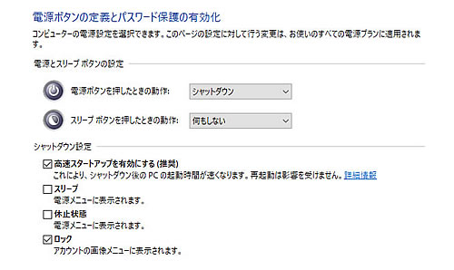 【高速スタートアップを有効にする】は、磁気ディスクの円盤が回転して読み書きするHDDを使っている場合、結構、起動が早くなります。半導体メモリのSSDでは、もともと読み込みが早く、これを有効にしても、ほぼ変わりません。