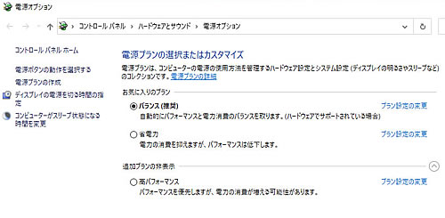 【システム】⇒ 左端の【電源とスリープ】⇒ 右端の【電源の追加設定】を選びます。ここから2つ設定するところがあり、分かれるのですが。