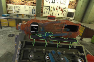 VRの場合、自動車修理工場の中にいる感覚になり、体で感じる雰囲気に大きな違いがあります。車を横から見たり、下からのぞいたり、外したタイヤやパーツを置いたり投げたりもできます。