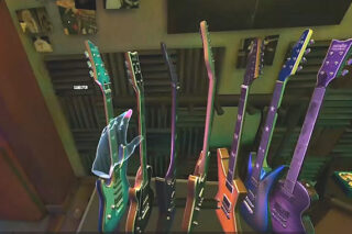 このゲーム、VRでエレキギターを持ち、流れてくる曲に合わせて、利き手で弦を弾き、もう一方の手で、コードを押さえるように指を動かすというものです。右利きでも、左利きでもプレイできます。演奏できる曲は、練習用の1曲を合わせて、24曲あります。現時点では、有料オプションで9曲まで増やせます。