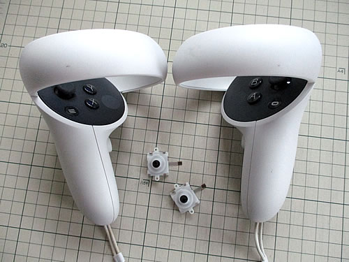 特に、VRコントローラーは、コンパクトな分、いろいろ部品が詰まっていて、複雑な立体パズルな状態で分解にてこずりました。