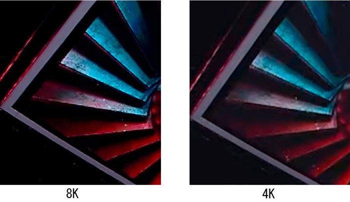 8Kの方は、鮮明に見え、質感が感じられる綺麗さがあり、4Kの方は、ややぼやけています。