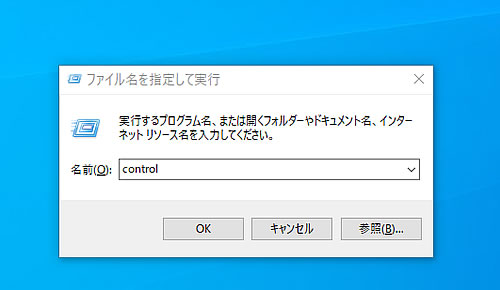 このトラブルを解決する方法は、Windowsボタン + Rで『ファイル名を指定して実行』を開き、そこに、『control』と入力して、OKを押します。
