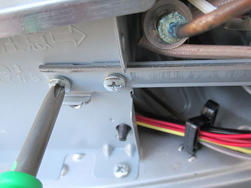 1.本体下部のネジを2本外し、前面カバーを取り外す