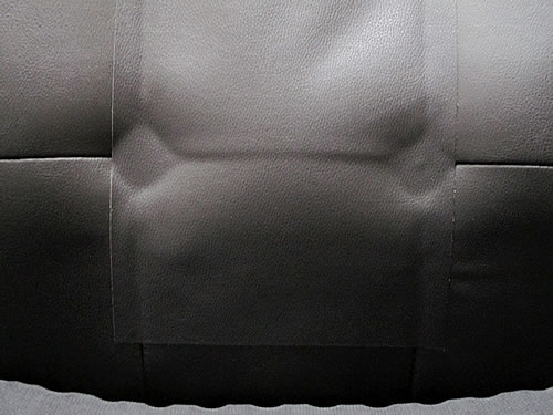 これを背もたれの割れている部分、座った時に腰の上あたりにくるところなのですが、シートを切らずに、そのまま貼りました。
