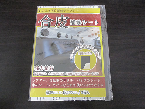 もう一つ、気になるところが、背もたれの割れなのですが。ここには、『合皮補修シート』を貼りました。これは、ソファーやバイクのシートなどが破れてしまったりした時に貼って直すものです。